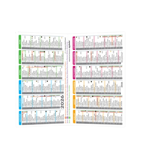 À accrocher au mur. Format A3/A4, mensuel ou annuel.