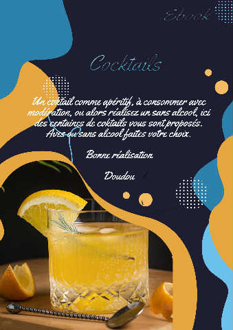 Cocktails Un coktail comme apéritif, à consommer avec modération, ou alors réalisez un sans alcool, ici des centaines de coktails vous sont proposés. Aves ou sans alcool faites votre choix. Bonne réalisation Doudou
