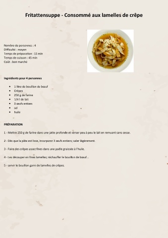 5 - servir le bouillon garni de lamelles de crêpes.