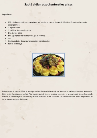 · 800 g d'élan surgelé (ou autre gibier, par ex. du cerf ou du chevreuil) débité en fines tranches après