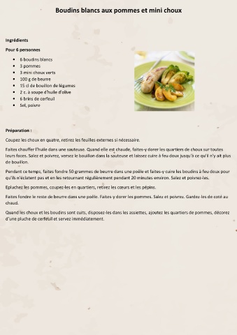 Quand les choux et les boudins sont cuits, disposez-les dans les assiettes, ajoutez les quartiers de pommes, décorez