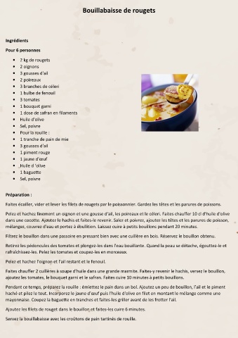 Servez la bouillabaisse avec les croûtons de pain tartinés de rouille.