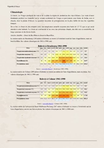 La station météo de Colmar (209 mètres d'altitude) se trouve au milieu de l'aire d'appellation, mais en plaine. Ses
