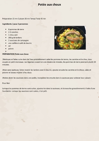 1Nettoyez et faites cuire dans de l'eau préalablement salée les pommes de terres, les carottes et le chou, tous