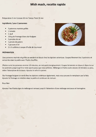 Mish mash, recette rapide