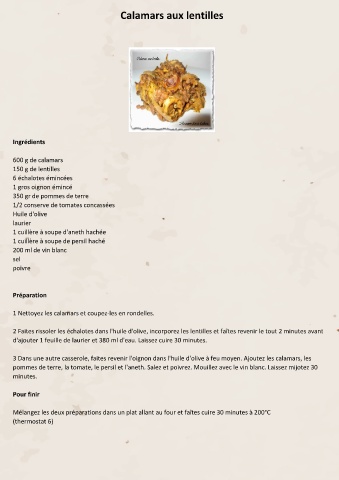 3 Dans une autre casserole, faites revenir l'oignon dans l'huile d'olive à feu moyen. Ajoutez les calamars, les