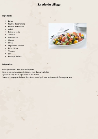 Servez accompagné d’olives, des câpres, des oignons en lanières et du fromage de feta